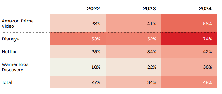 - V roce 2022 představovaly filmy přibližně 27 % celkových příjmů ze streamování.