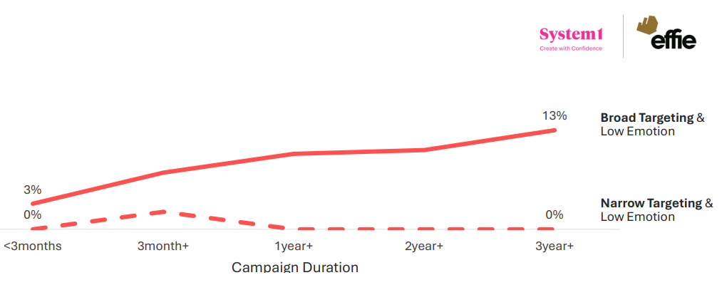 Široký dosah (masový marketing) v kombinaci s vysokým emocionálním dopadem významně zvyšuje ziskovost kampaně, což je v souladu s principy budování značky.