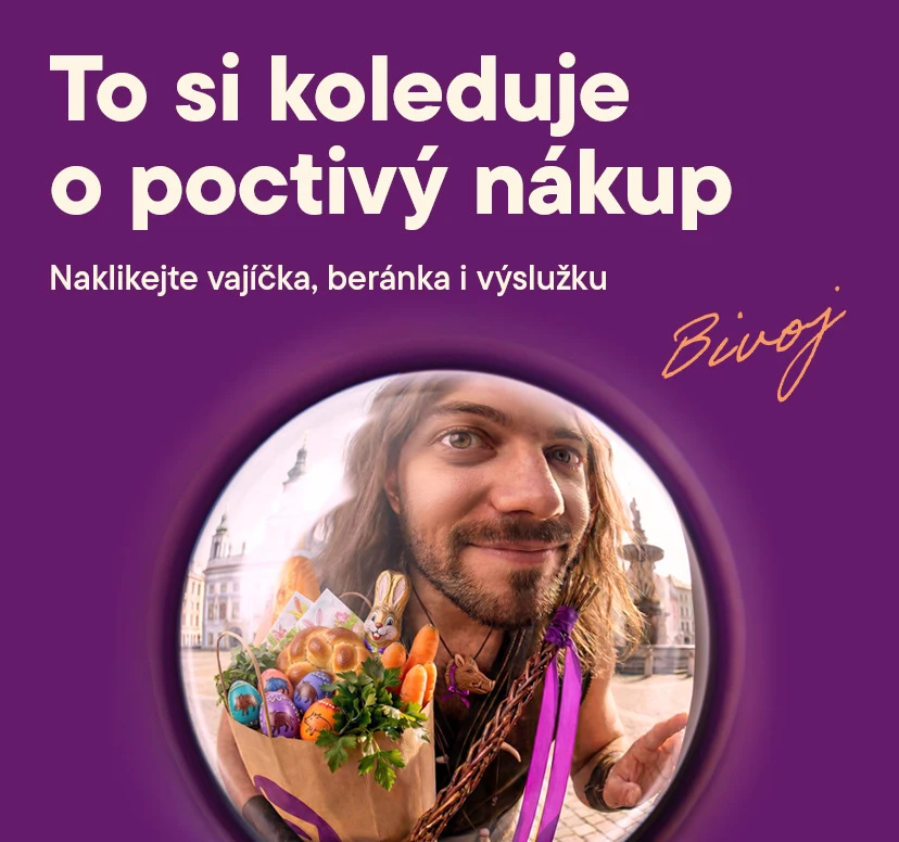 Mezi kreativní velikonoční kampaně posledních let patří ale také české kampaně. Letošní kampaň online supermarketu Košík.cz navázala na loni uvedený komunikační koncept „Už nemusíte žít v minulosti“ a rozvíjí ho ve velikonoční kampani s Bivojem, který se stává milým koledníkem.
