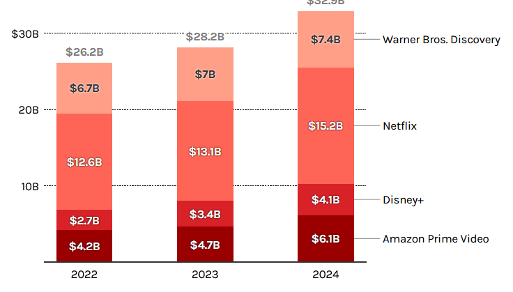 Source: Parrot analytics; revenue figures are estimates for the calendar years for u.s. market only (i.e. excludes Canada)Methodology: Total revenue reported by each platform, modeled with how individual titles contribute to user growth — specifically estimating their impact on both new subscriber acquisition and existing user retention.