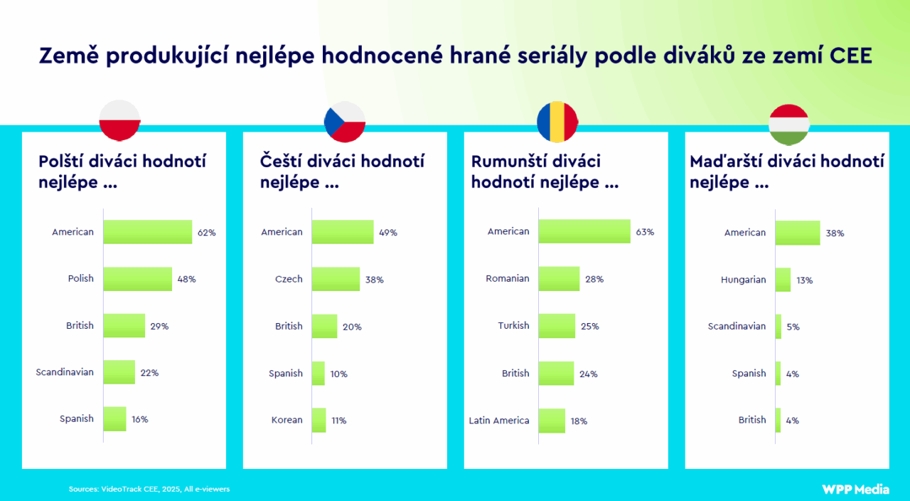 Viewers from all markets in the region consider US series to be the best. Online viewers in Poland, the Czech Republic, Romania and Hungary associate them with the highest production quality, with local series ranking second in all markets. There is a clear correlation between age and preference - the older the viewer, the stronger their attachment to local series, with Romania being the only exception where young viewers are relatively more appreciative of local productions than others.